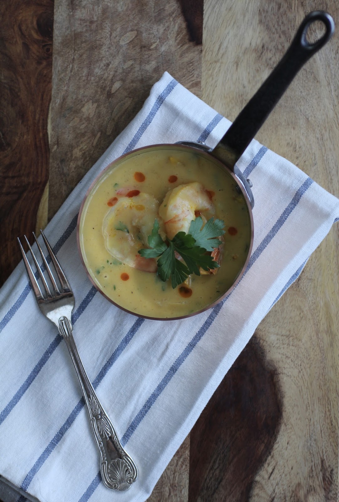3. Na mesma panela, aqueça o restante do azeite de oliva e refogue a cebola, o alho, a pimenta dedo de moça e os pimentões. Acrescente o creme de mandioca e deixe apurar por uns 5-10 minutos. Acrescente os camarões e deixe cozinhar por mais uns 3 minutos. Corrija os temperos, acrescente o suco de limão e o coentro. Sirva imediatamente acompanhado de arroz branco.